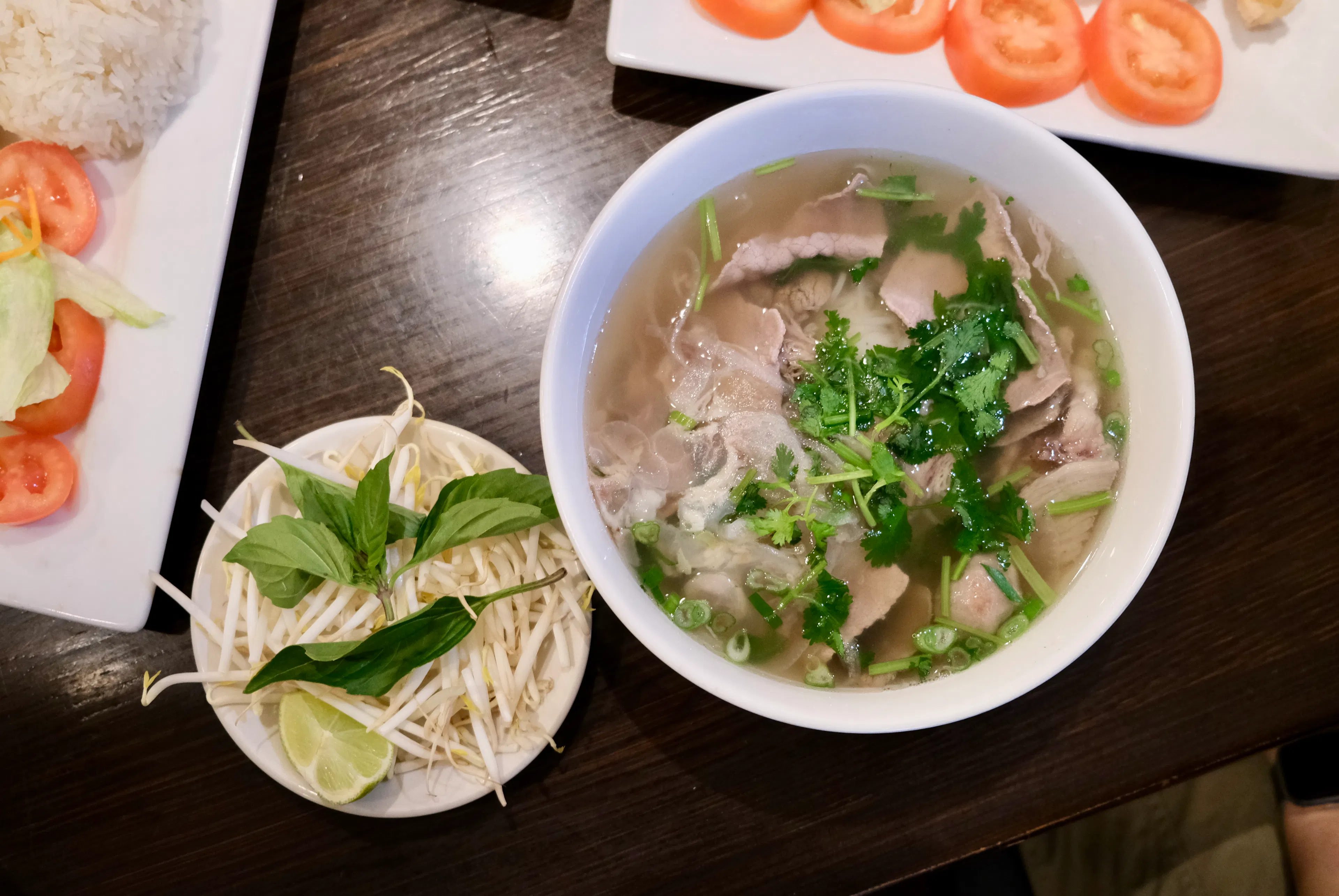 The house special pho featured a rich beef broth with a selection of meats, including rare eye round steak, brisket, tendon, and meatballs. This was accompanied by the usual plate of bean sprouts, mints, and lime. The noodles were springy with a satisfying chew, the broth was aromatic and hydrating, and the assortment of meats were tender and generous. The dish was comforting and reliable and hit all the checkmarks of a good pho.